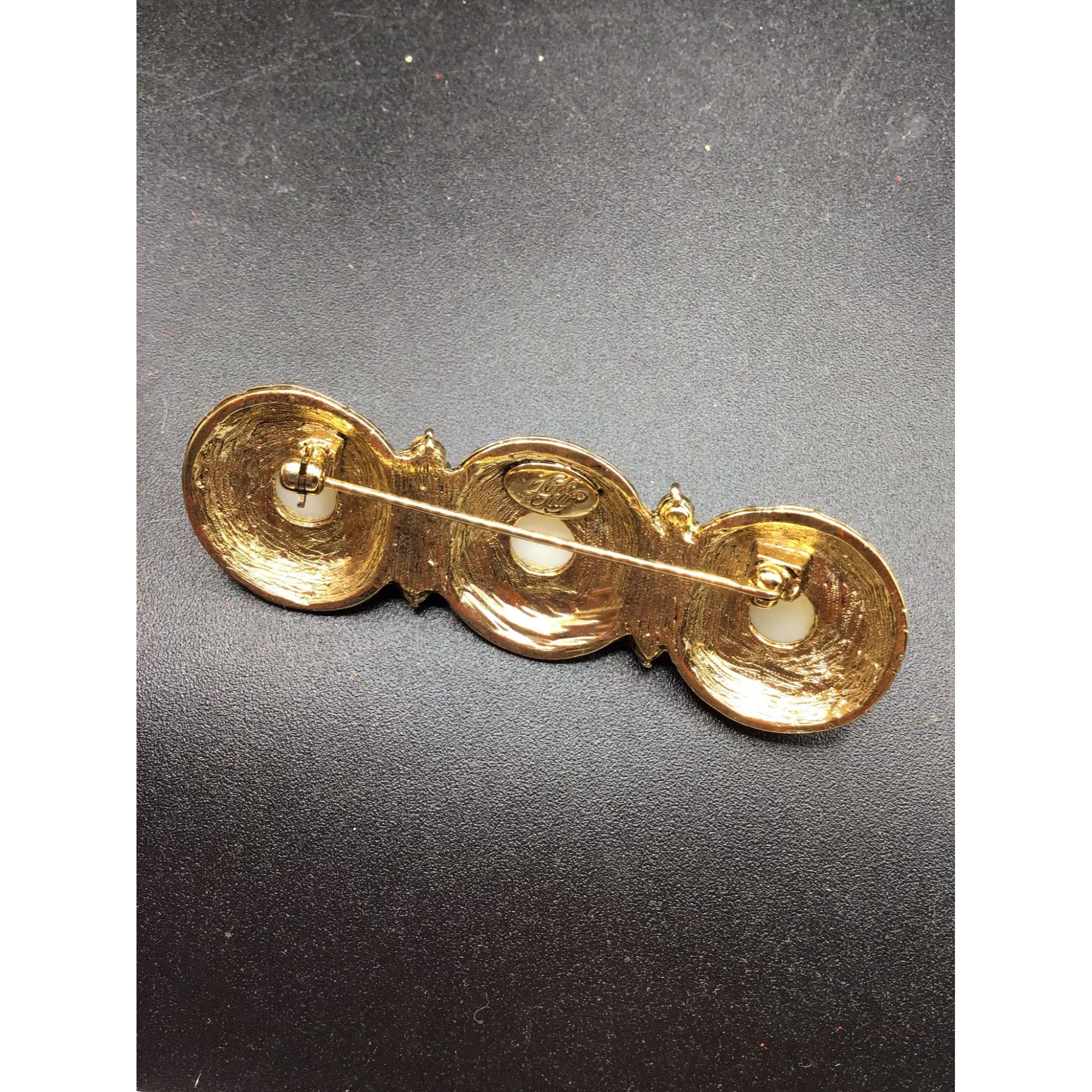 Kirks Folly Signed Elegant Bar Pin Gold Tone with Faux Pearls & Rhinestones