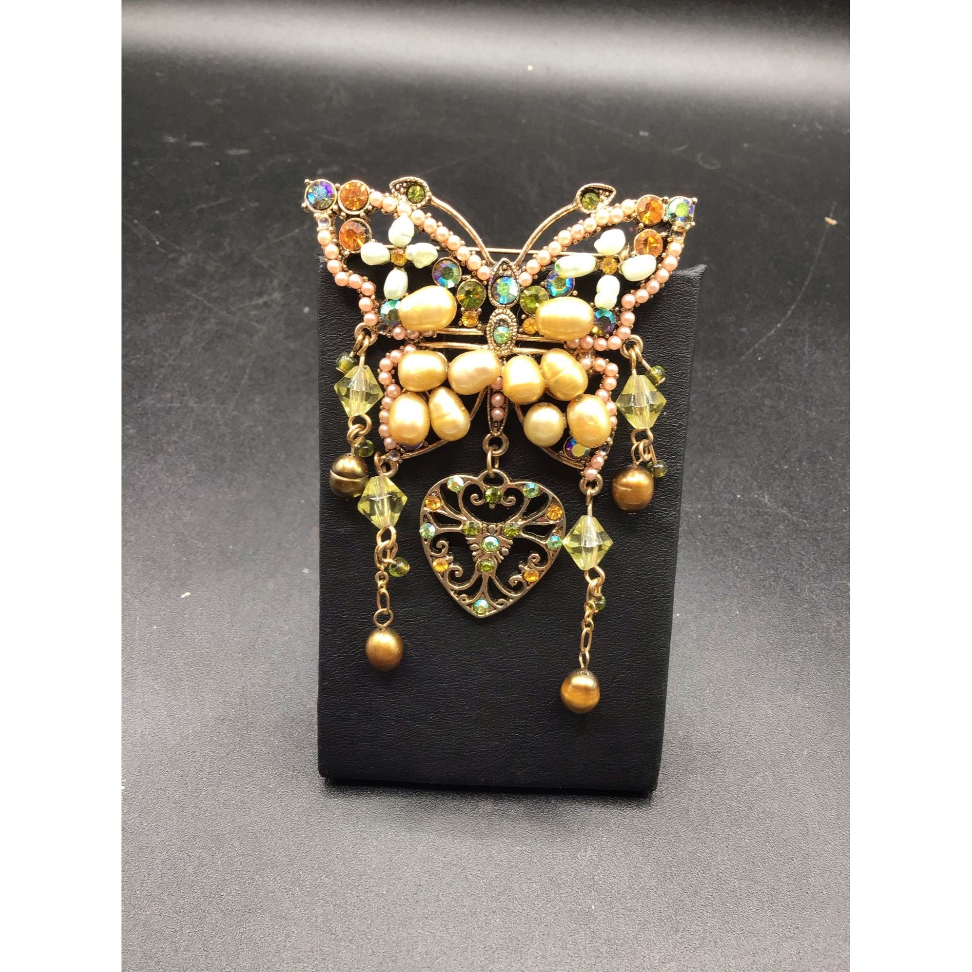 This listing is for a gold tone butterfly brooch with pearl and rhinestones