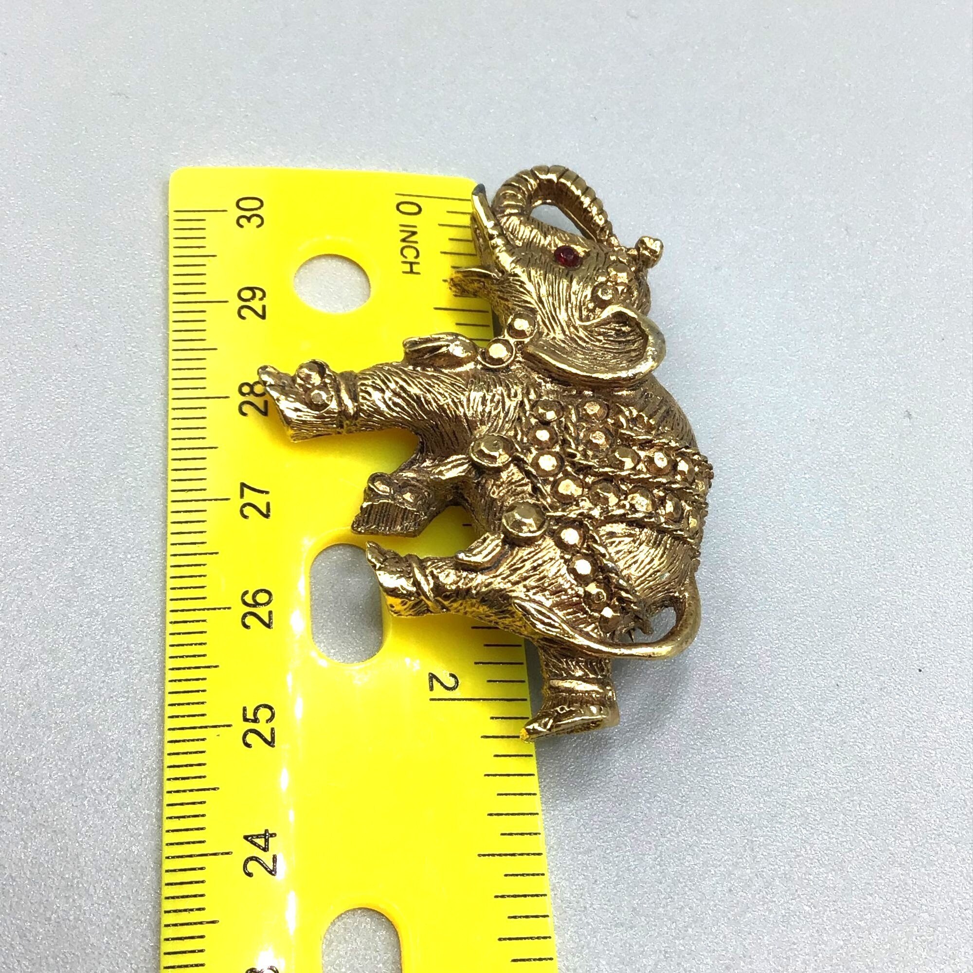 Vintage Elephant Brooch Gold Tone Animal Pin Golden Elephant with Trunk Red Eye