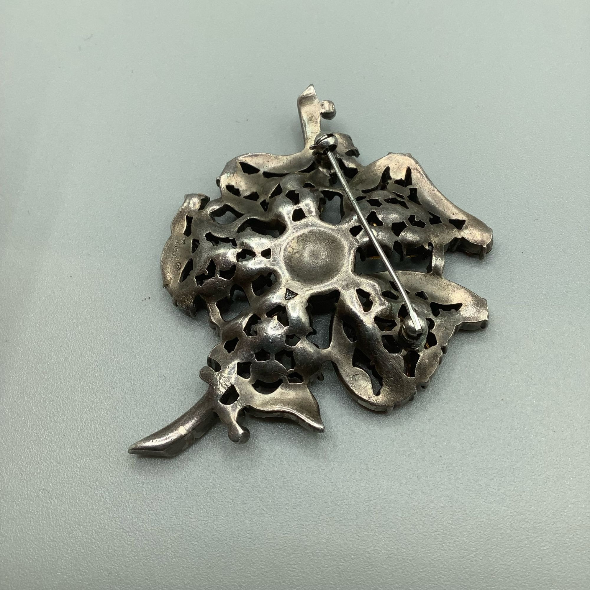 Signed Trifari Fuchsia Flower Brooch Sterling Silver Older Design Rhinestone Pin