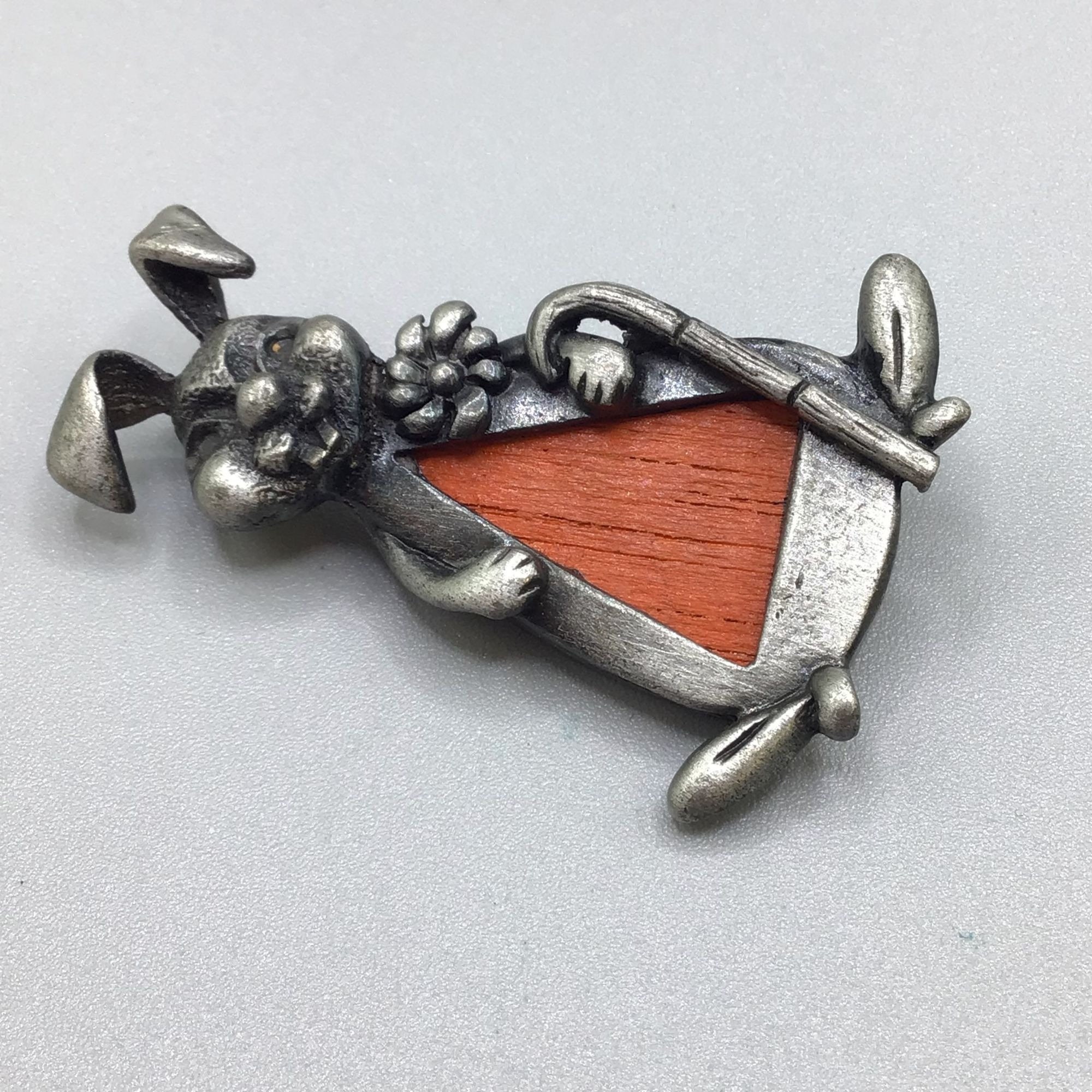 Vintage Bunny Brooch Pewter Metal Wood Figural Rabbit Vintage Animal Costume Pin