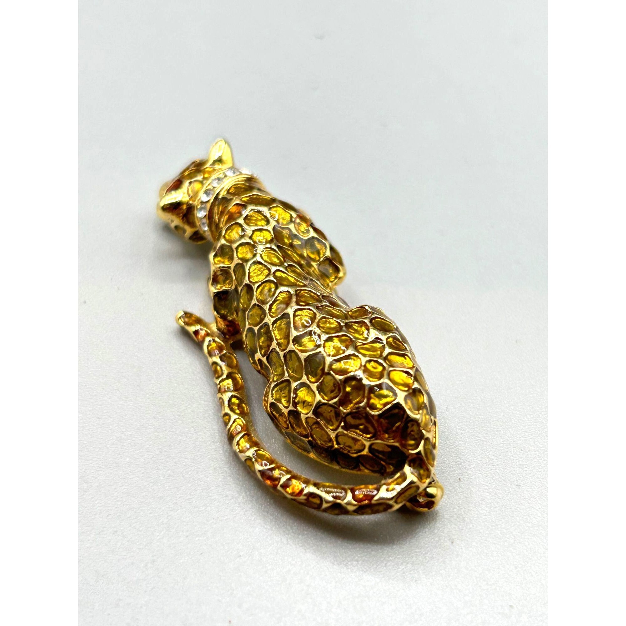 Wild Cat Brooch Cheetah Leopard Gold Tone & Enamel Pin Nice Quality and Weight