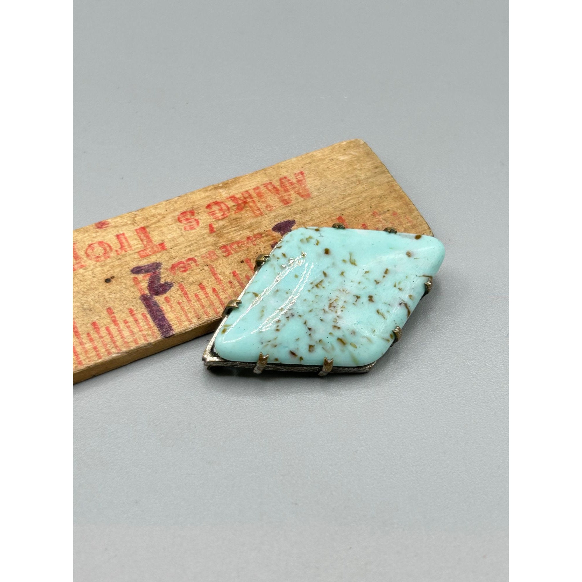 Czech Glass Brooch Turquoise Color Glass Diamond Shaped Simple Collectible Pin