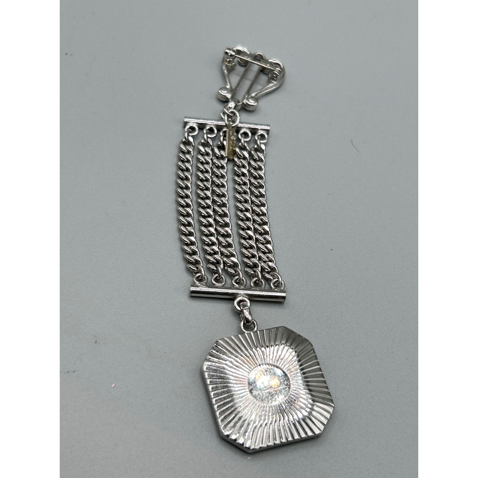 Multichain Brooch with Fob Silver Tone Watch Pin Engravable Signed Monet Jewelry