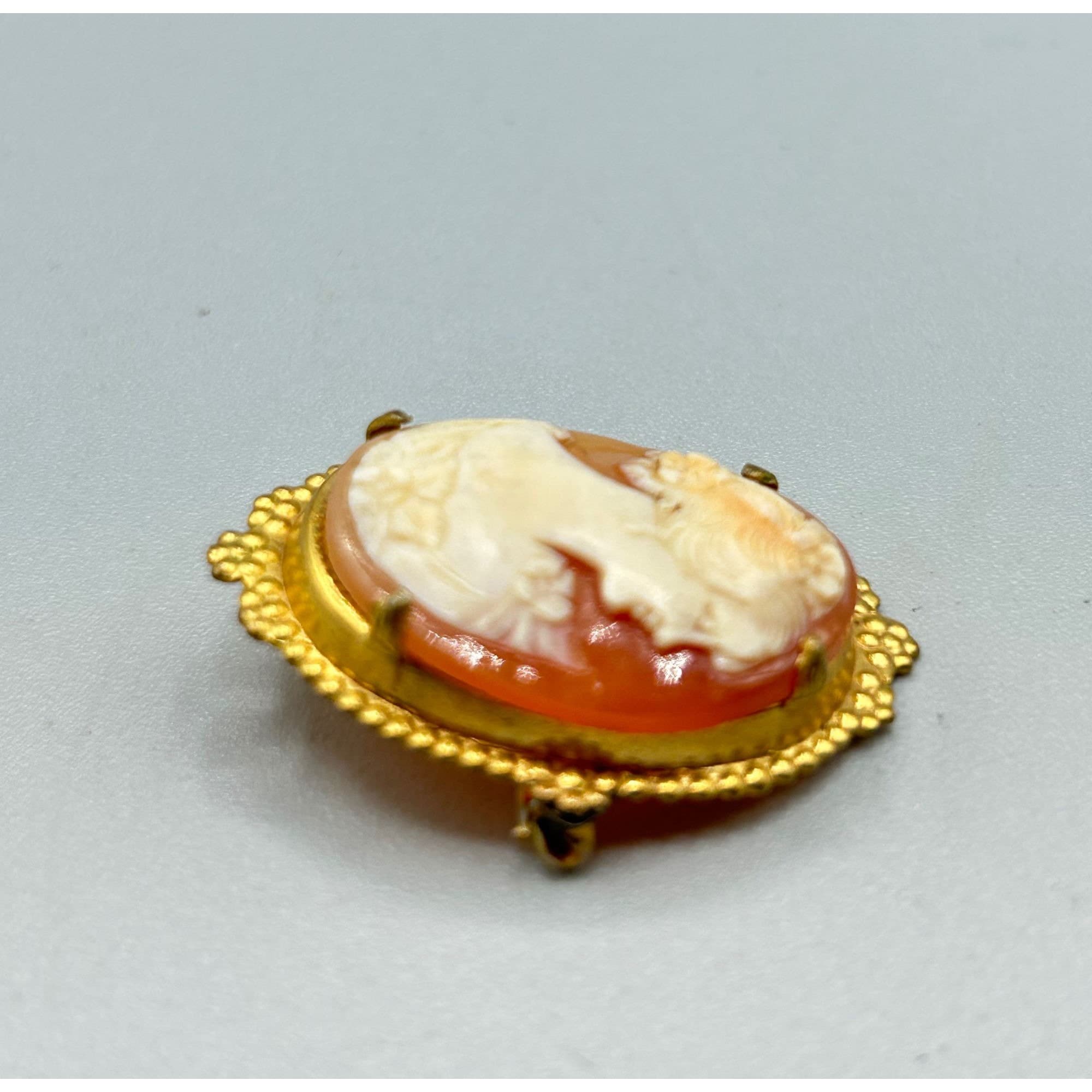 Vintage Genuine Carved Cameo Pin Brooch Carved Shell Lady Cameo Gold Tone Frame