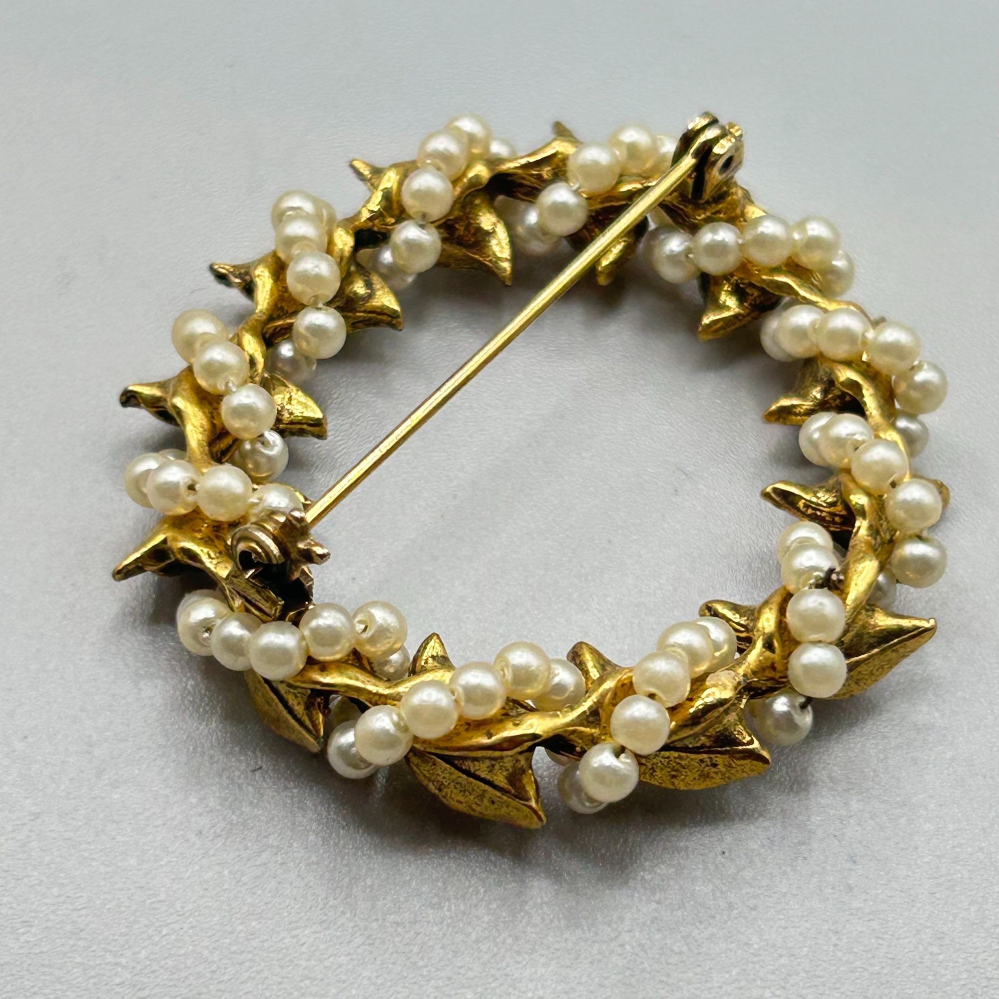 This listing is for pearls and leaves wreath brooch
