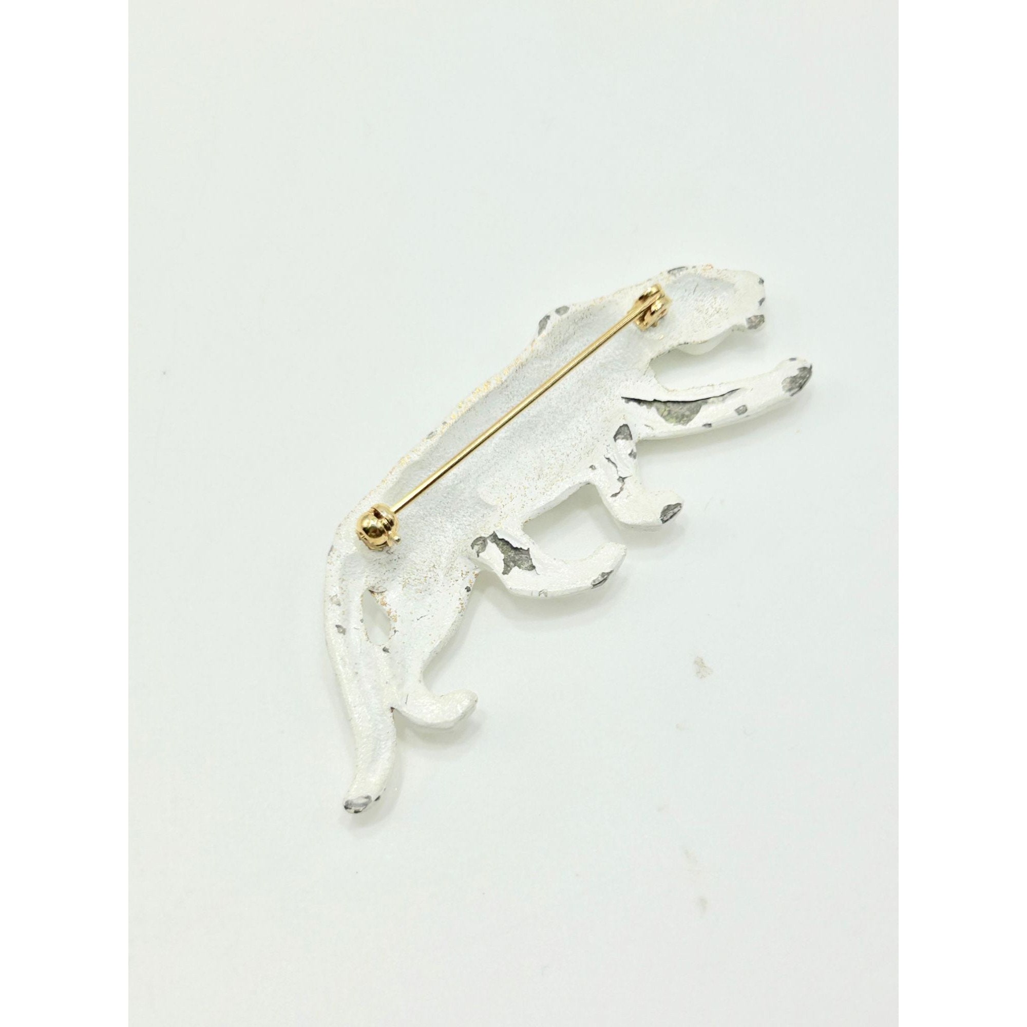 This listing is for white enamel cheetah pin with black rhinestones