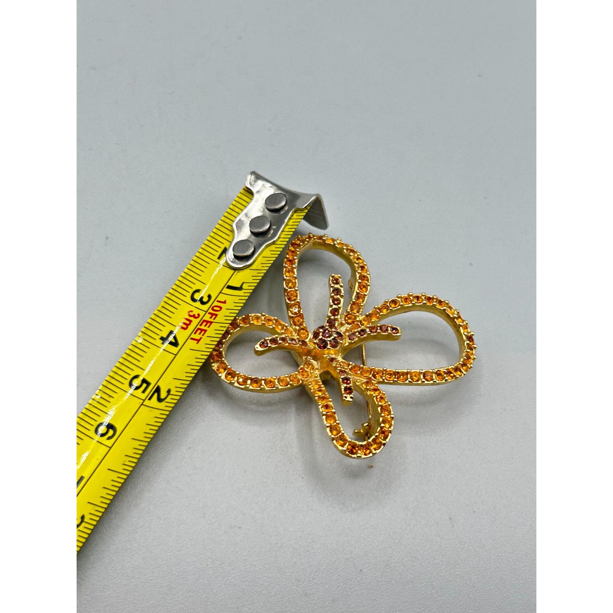 Vintage Dimensional Pin Brooch Topaz Color Rhinestones Gold Tone Floral Jewelry