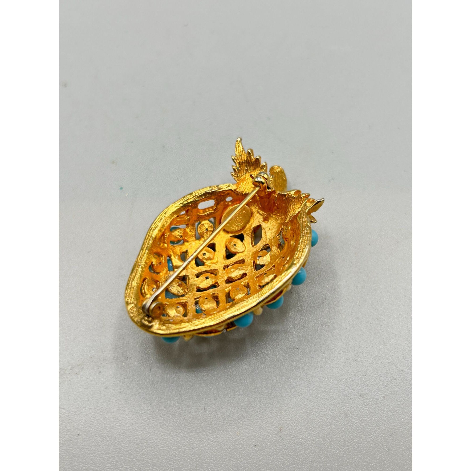 Signed De Nicola Fruit Pin Brooch Berry Turquoise Ballotini Balls Gold Tone
