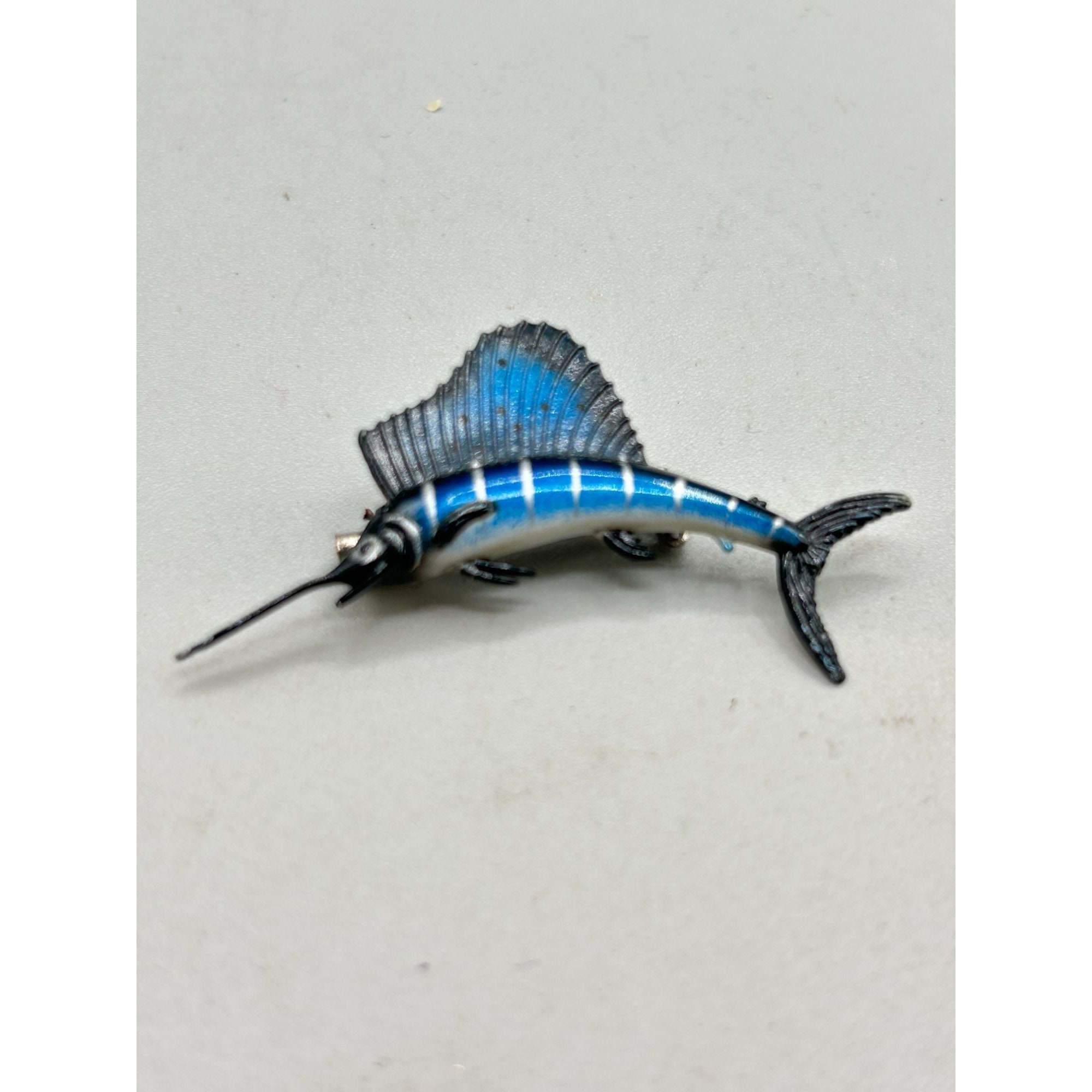 Vintage Blue Sailfish Plastic Pin Brooch Tri-state Fish Animal Figural Jewelry