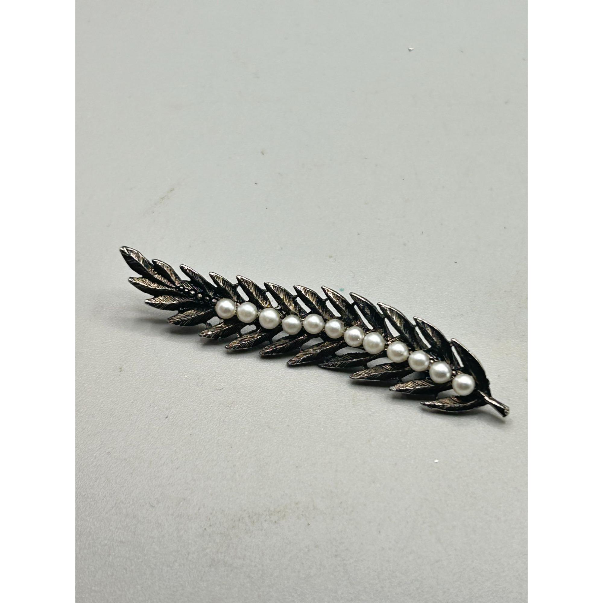 This listing is for elongated leaf pin brooch with faux pearls