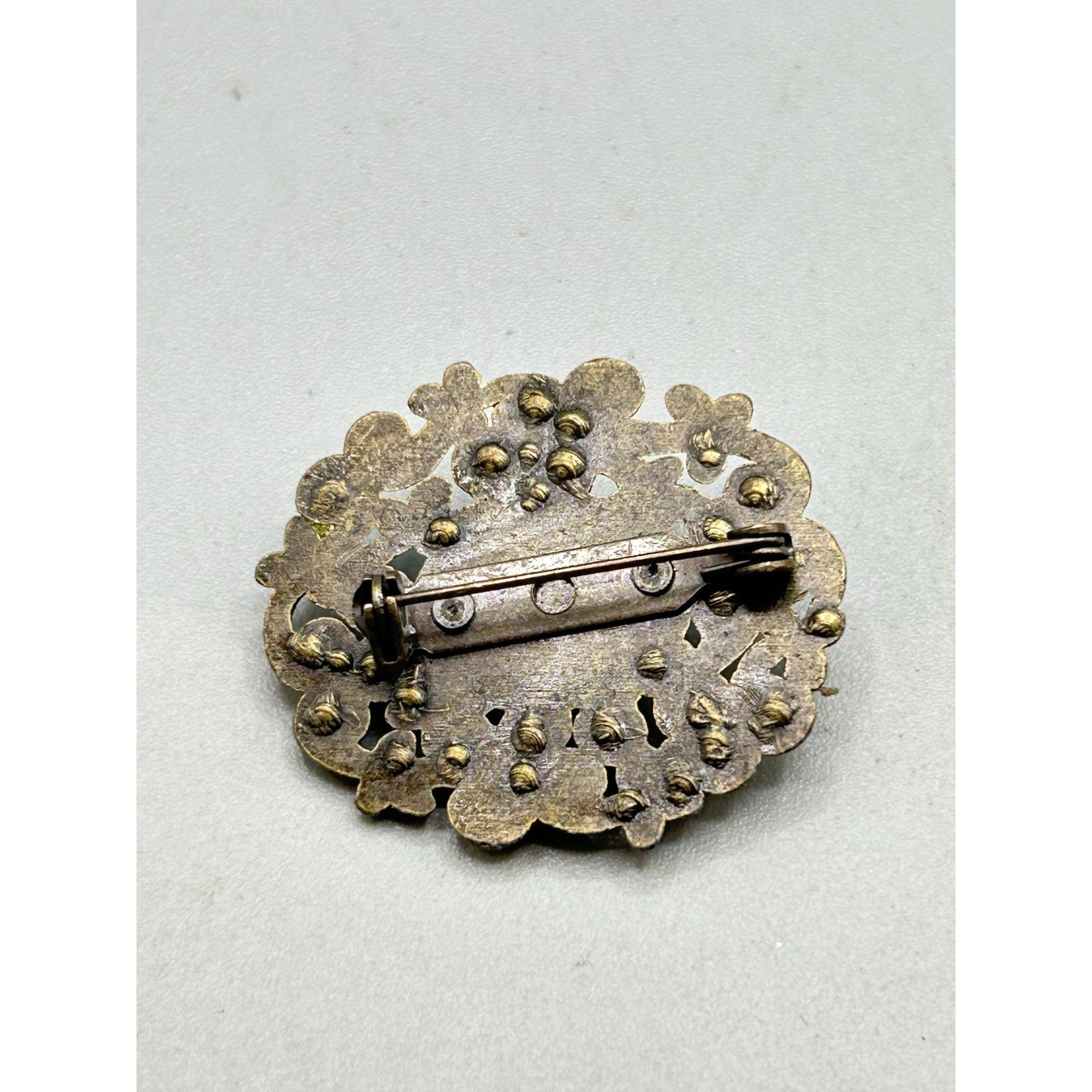 Pretty Rhinestones Pin Brooch Moonglow Acrylic Cabochon Antique Style Jewelry