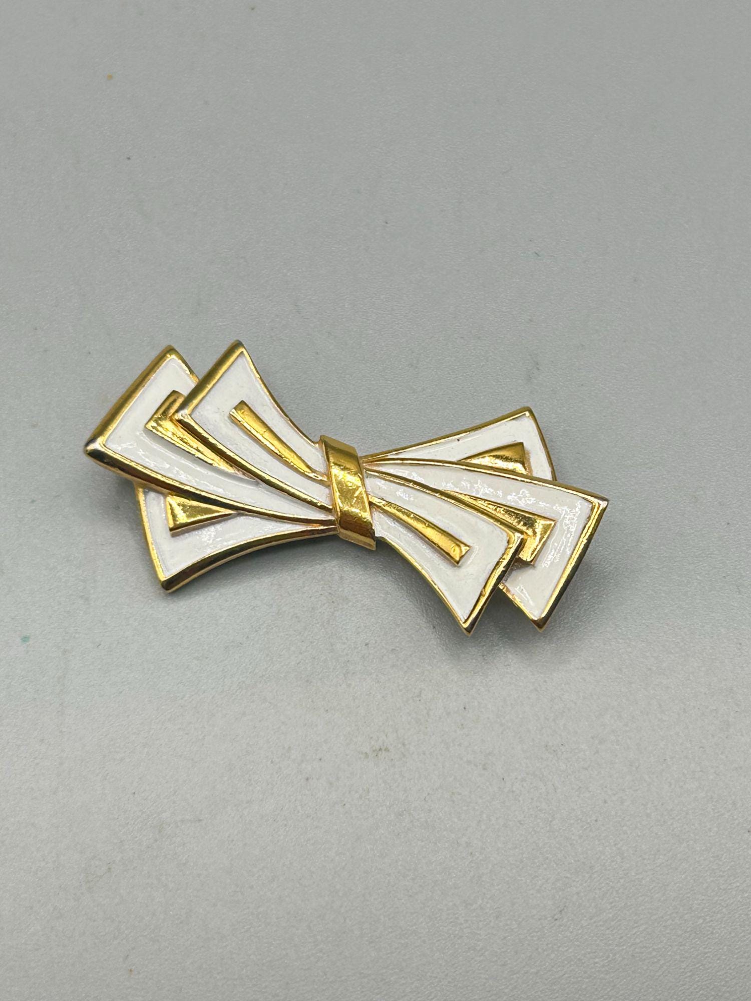 This listing is for white enamel ribbon bow pin brooch