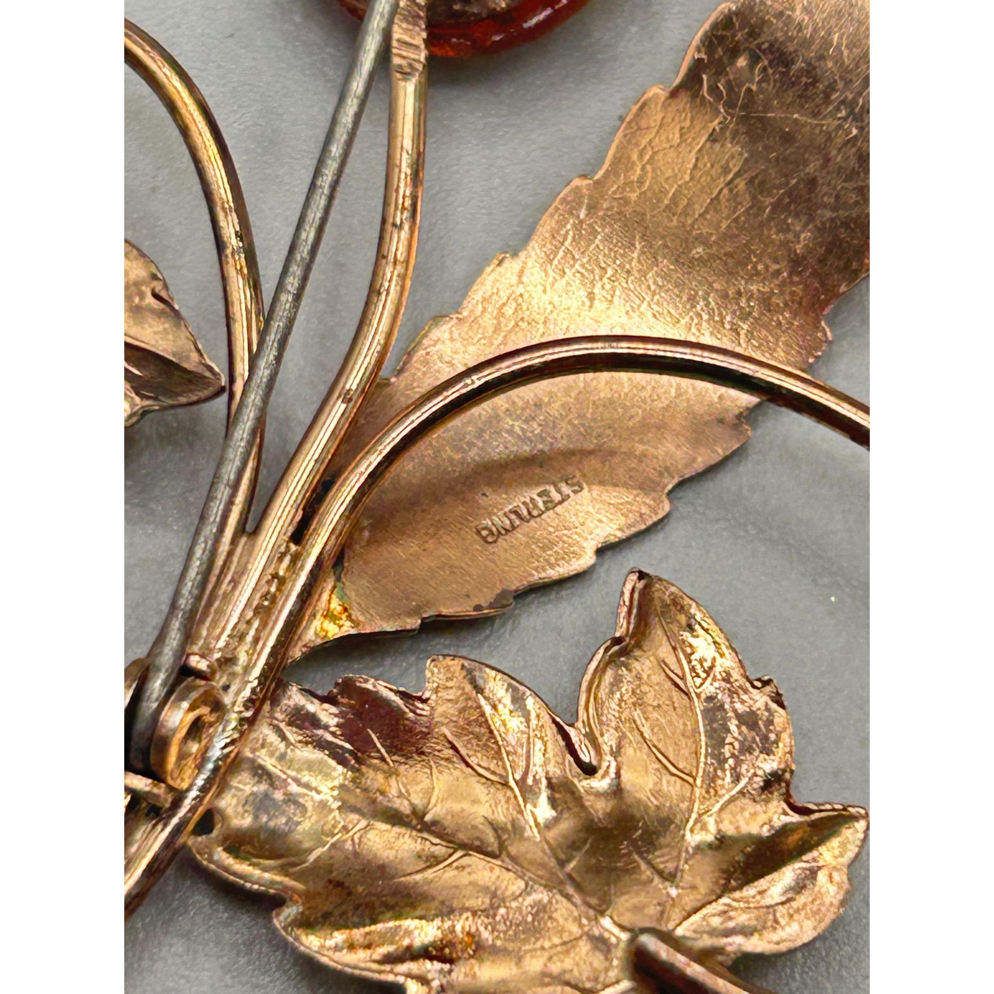 Antique Sterling Silver Floral Brooch Gold Vermeil and Topaz Glass Stone AS IS