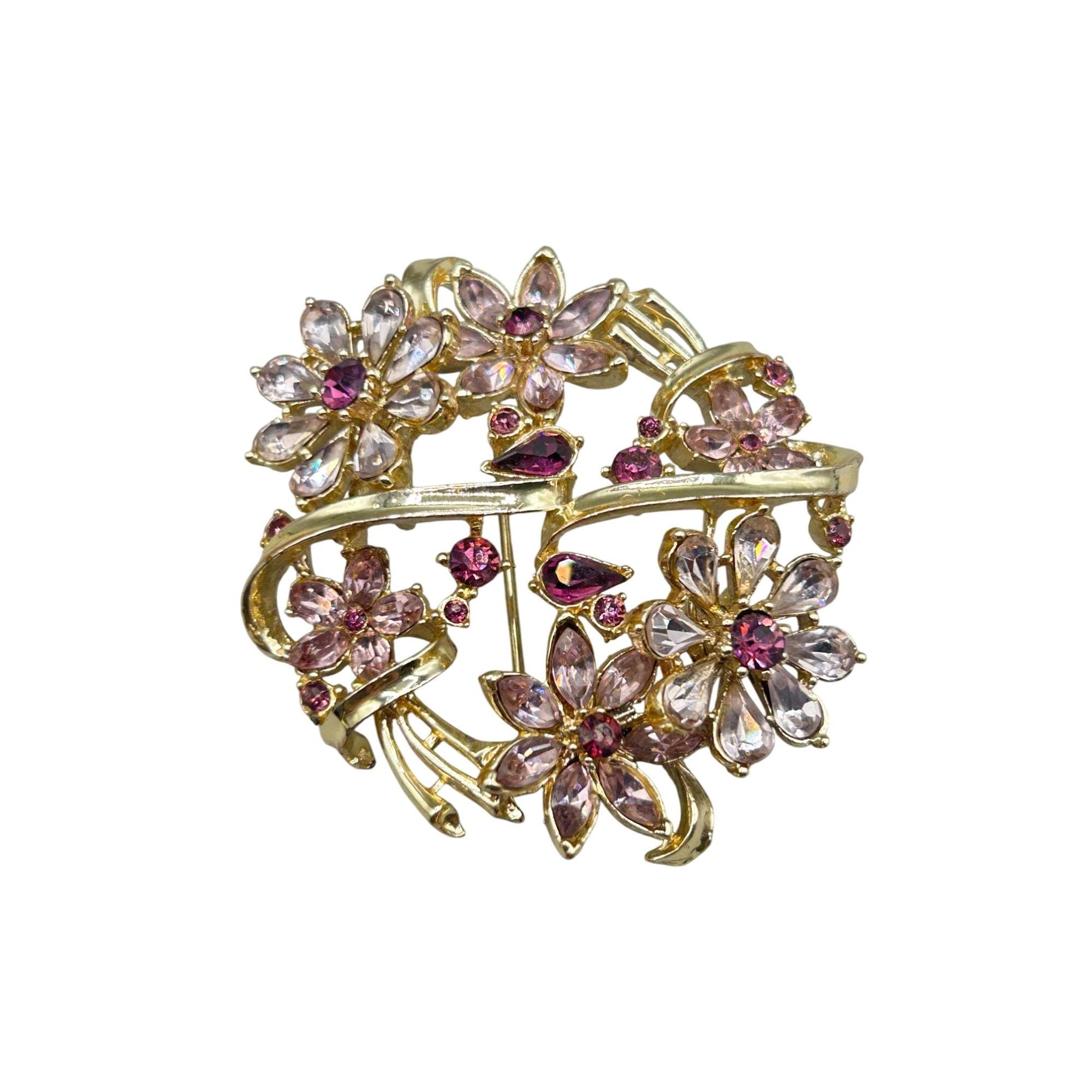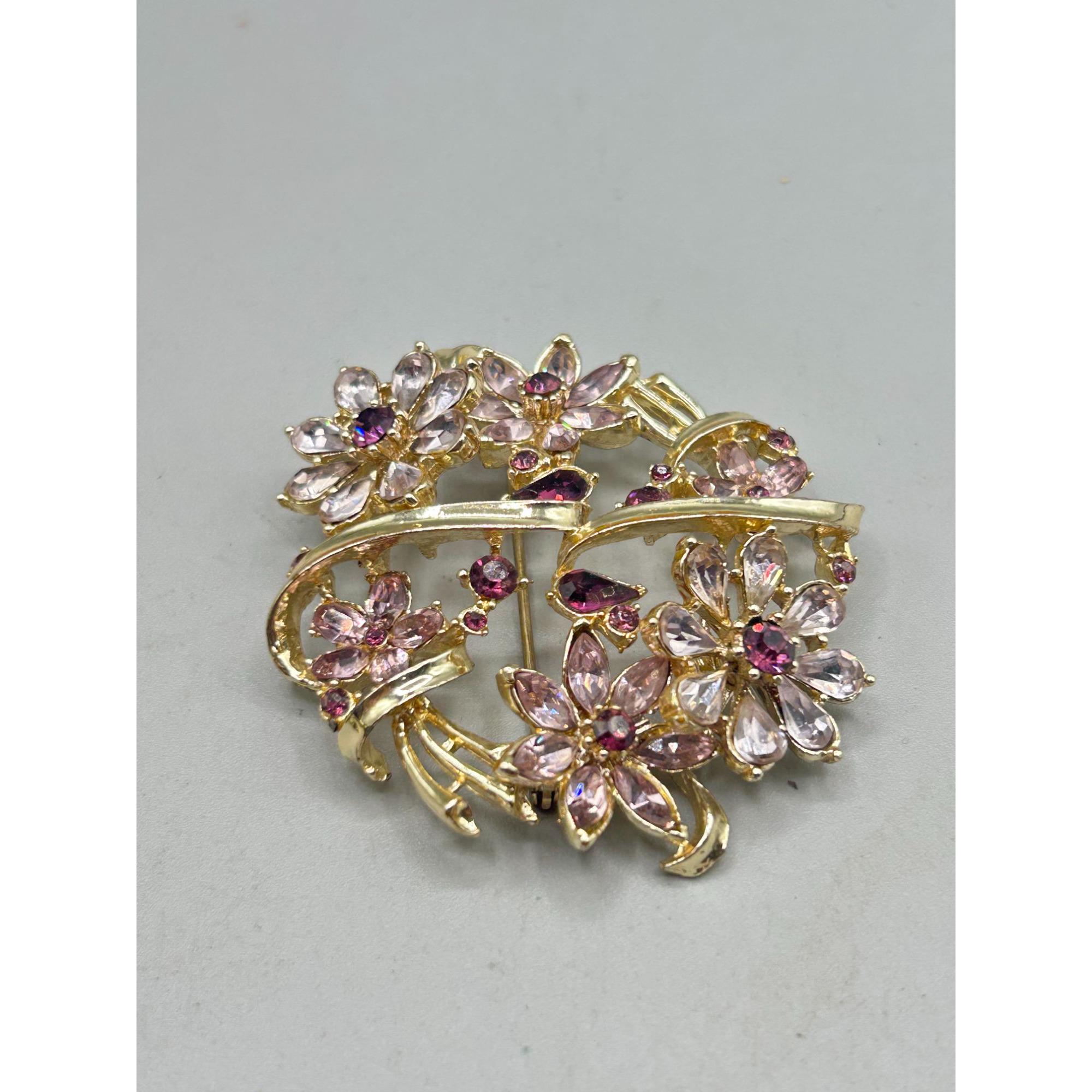 Vintage CORO PEGASUS Pin Brooch Gold Tone And Pink Rhinestones Signed Brooch