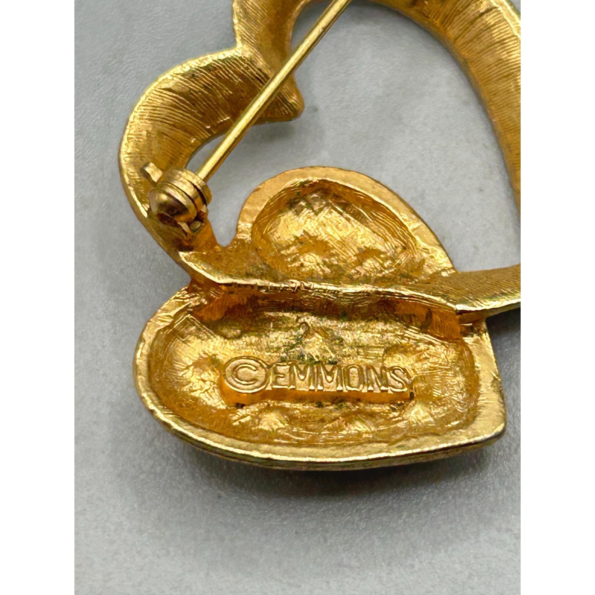 EMMONS Pin Brooch Double Hearts With Colored Crystals And Faux Pearls Vintage Jewelry